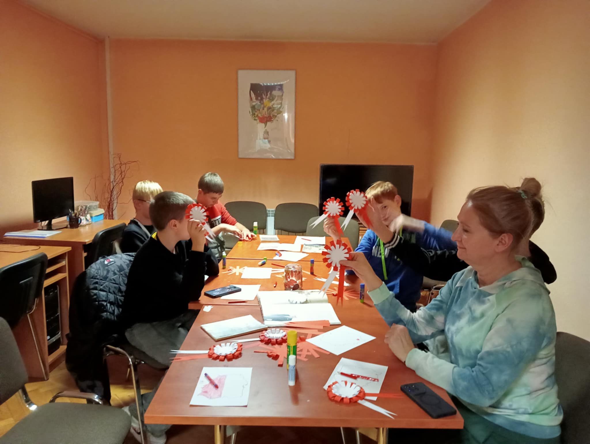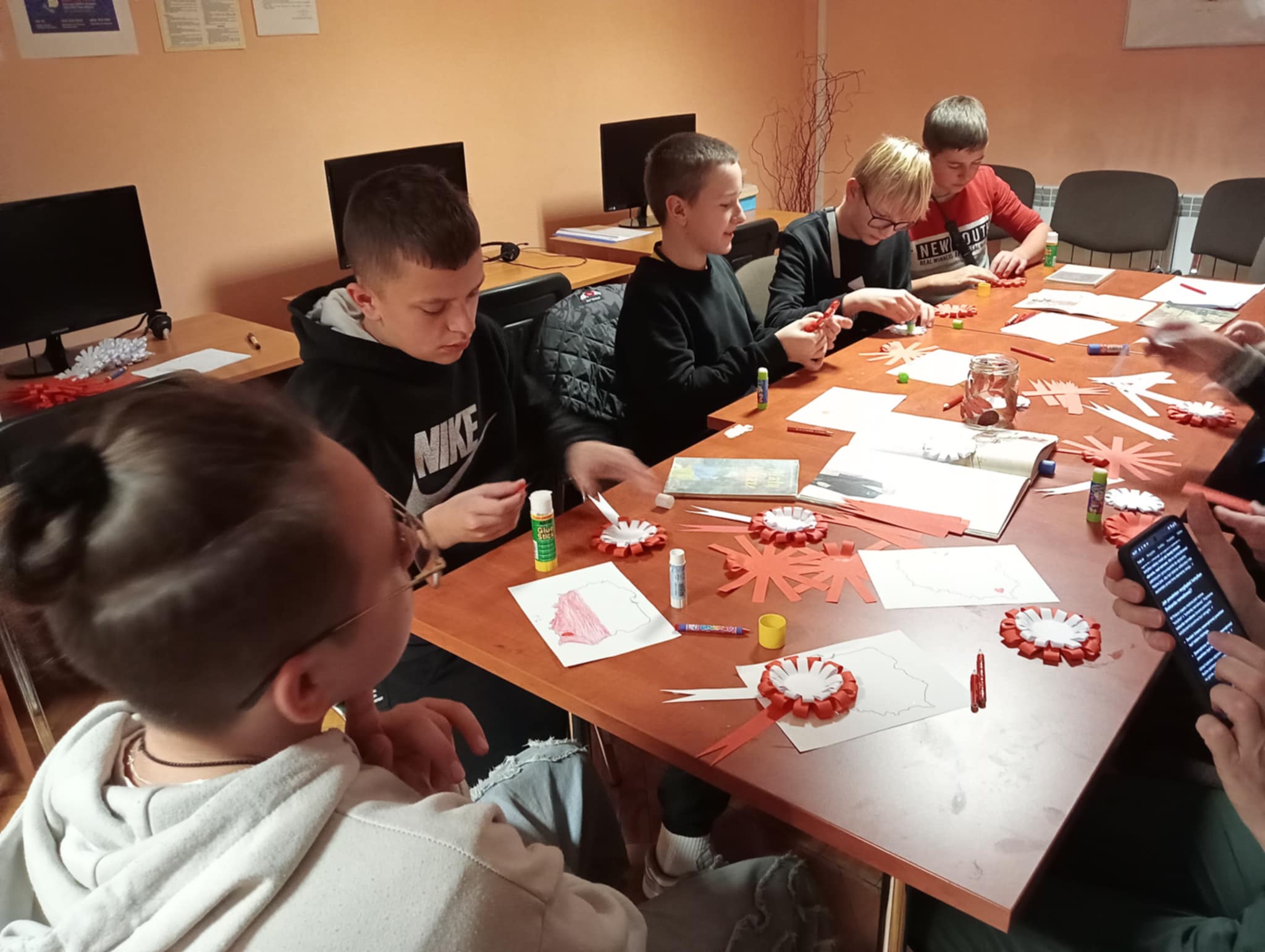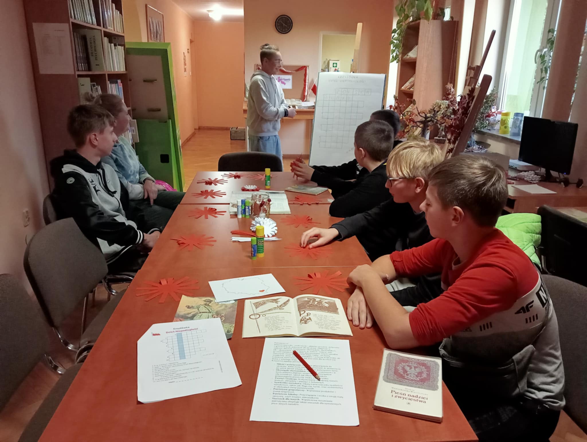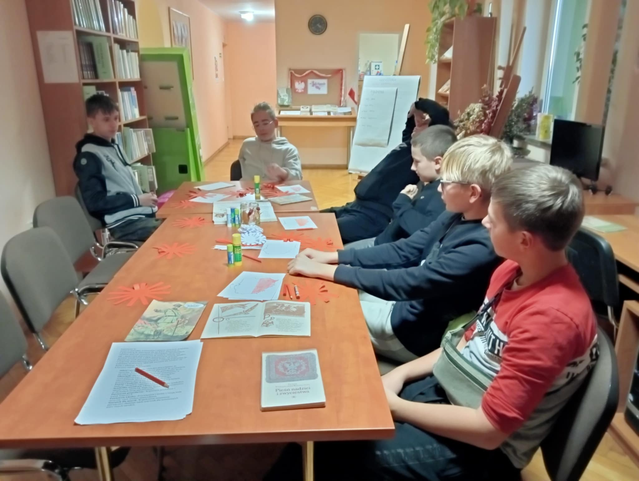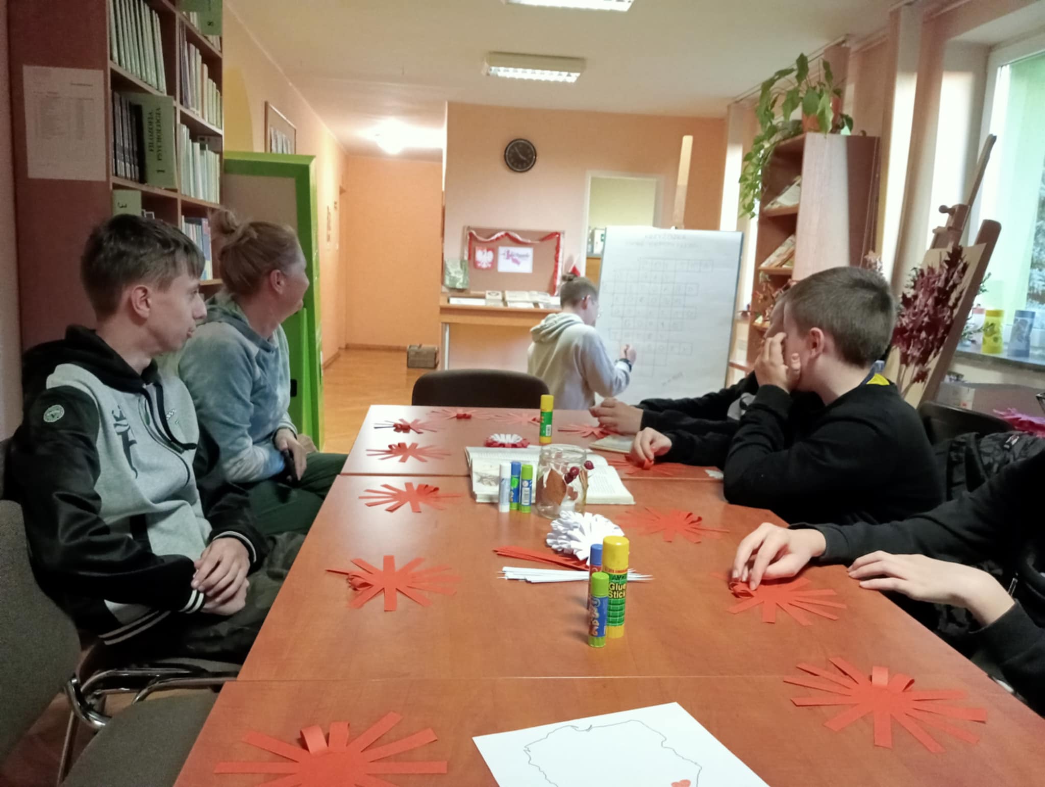 Na te i inne pytania udzieliła odpowiedzi młodzież ze Świetlicy Środowiskowej, która w dniu 7 listopada zawitała do Gminnej Biblioteki Publicznej Filii w Komborni. Okazją do spotkania oraz podjęcia tak ważnego tematu była kolejna rocznica odzyskania przez Polskę Niepodległości. Goście z powagą i zaangażowaniem wdali się w rozmowę, odpowiadali oraz zadawali pytania. Młodzi ludzie doskonale wiedzą, że symbolom narodowym powinniśmy okazywać szacunek, podczas odśpiewania hymnu państwowego zachowujemy odpowiednią postawę, natomiast o historii i tradycji polskiej nie możemy zapominać. Na zakończenie goście wykonali kokardę narodową, którą zachowali na pamiątkę spotkania.